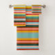 Toalla de baño Set de 3 servicios de baño y decoración informal de mobiliario hogareño impresa con el diseño gráfico Colorido Horizontal Retro Stripes por The FabricSeal en Zazzle #ZazzleMade https://www.zazzle.com/store/thefabricseal Este fresco retro de mediados de los años 1960 y 1970 influenciado por el ilustracion cuenta con una variedad de arcoíris, amaneceres y puesta colores como rosa, violeta, rojo, naranja, azul, verde, turquesa, amarillo más gris. Esta serie retro de diseño de dibujo y de redacción fue creada con varias otras similares que también aparecen en la tienda. Excelente para mezclar y hacer coincidir nuestros productos impresos a pedido. Míralos. Creo muchos diseños cada mes así que por favor regresen a menudo y sigan la tienda aquí en Zazzle y en Pinterest para publicar y actualizaciones de promoción de ventas. Muchas gracias por visitar y comprar en la tienda. Todos los 500 diseños originales de nuestra tienda están disponibles para procesos de personalización con más de 10.000 productos Zazzle.