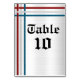 Cintas de mesa rojas, blancas y azules para tarjetas de número de tabla de fiesta patriótico o fiesta de retiro. Cintas simples sobre el fondo de satén blanco.