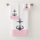 Elegantes líneas rosas bordean con un ancla náutica azul y rosa. Cualquier color puede solicitarse por correo electrónico.