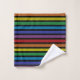 Arte digital abstracto de rayas arcoiris de colores más ligeros, delineado por el color sólido más delgado, contra un fondo negro.