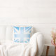 Una almohada de la bandera del Reino Unido con un estilo antiguo único en tonos azules. Diseñado con el jack de unión, bandera de Gran Bretaña y un pequeño tratamiento vintage. Producido por Sarah Trett. Se vería muy bien en un dormitorio, un vivero, una sala de juegos o un salón para niños.