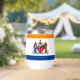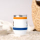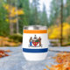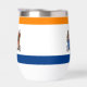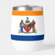 Tumbler de vino termal con la bandera de Albany, Nueva York. Bandera naranja, blanca y azul con el emblema de la ciudad en el centro