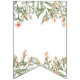 Una elegante bandera con flores de color chispeante y hojas de color verde salado.