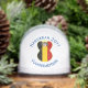 Ángel vestido con la bandera de Bélgica vuela sobre un globo de nieve para Hanukkah. Las letras azules alrededor del ángel belga permiten la personalización del nombre, el año y las vacaciones. Un regalo de Hanukkah para los miembros de familias con múltiples religiones y ascendencia belga. Además de sus vacaciones o su decoración Hanukkah.