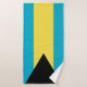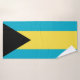 La bandera bahameña es una tricolor horizontal con un chevron negro. Los colores usados en la bandera son azul, amarillo, negro. La proporción de la bandera bahameña es de 1:2. La bandera de las Bahamas fue adoptada en 1973. El primer uso del diseño actual de la bandera fue en 1973. El último cambio en el diseño actual de la bandera bahameña fue en 1973.