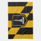Toalla de cocina con bandera de la ciudad de Baltimore, Maryland; bandera negra y amarilla con un ilustracion de Monumento a la Batalla