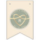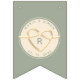 Banderas de bunting de boda verdes salvia simples, elegantes, minimalistas y modernas, con monograma y corazón de cuerda dorada.