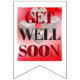 Esta bandera de bunting presenta una colección de globos blancos sobre un fondo rojo y blanco que muestra las palabras "Recupérate Pronto" con un estilo tipográfico de rosa roja/negra en este tema de Recupérate Pronto. Todas las banderas tienen impresión de un solo lado, seguras para exteriores y hechas con una cuerda de plástico grueso tiene (16) banderines de cola de golondrina de 5,5" x 8" en una cuerda de 6' de largo.