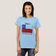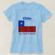 En el frente de esta camisa un título y un lema editable acompaña la bandera chilena con su estrella blanca en un cantón azul con las bandas blancas y rojas. La parte posterior exhibe un mapa detallado de Chile.