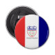 Abridor de botellas con bandera de la ciudad de Cleveland, Ohio; bandera con tres bandas verticales de rojo, blanco y azul con sello de la ciudad en el centro