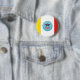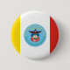 Botón redondo con bandera de la ciudad de Colón, Ohio; bandera con tres bandas verticales de amarillo, blanco y rojo con sello azul de la ciudad con águila calva en el centro