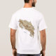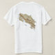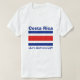 Un título y un lema editable acompaña las bandas horizontales azules, blancas y rojas de la bandera de Rican de la costa en el frente de esta camiseta. La parte posterior exhibe un mapa detallado de Costa Rica.