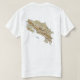 La parte delantera de esta camiseta tiene una pequeña bandera costarricense con sus conocidas bandas azules, blancas y rojas, mientras que la parte trasera muestra un mapa de alivio de Costa Rica. Disponible en camisetas, sudaderas, charcutería, mangas largas y más.