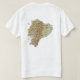 El frente de esta camiseta lleva una pequeña bandera del Ecuadorian con su escudo de armas familiar sobre bandas amarillas, azules y rojas, mientras que la parte posterior exhibe un mapa de alivio de Ecuador. Disponible en las camisetas, las camisetas, los polos, las largo-mangas y más.