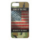 Este patriótico funda del iPhone 7 tiene un patrón de fondo de camuflaje de color caqui verde, marrón y negro con una bandera estadounidense de color rojo, blanco y gris azul encima con las palabras "Hogar de los libres, debido al valiente". Gracias a tu soldado o personal militar favorito con un tributo apropiado a su servicio. Si necesita ayuda, envíe un correo electrónico a niteowlstudio@gmail.com.