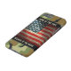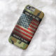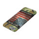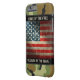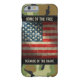 Este patriótico funda del iPhone 6 tiene un patrón de fondo de camuflaje de color caqui verde, marrón y negro con una bandera estadounidense de color rojo, blanco y gris azul encima con las palabras "Hogar de los libres, por los valientes". Gracias a tu soldado o personal militar favorito con un tributo apropiado a su servicio. Si necesita ayuda, envíe un correo electrónico a niteowlstudio@gmail.com.