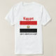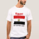 Un título y un lema editable acompaña el escudo de armas sobre bandas rojas, blancas y negras de la bandera egipcia en el frente de esta camiseta. La parte posterior exhibe un mapa detallado de Egipto.