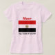 En el frente de esta camisa un título y un lema editable acompaña la bandera egipcia con su escudo de armas en rojo, blanco y negro. La parte posterior exhibe un mapa detallado de Egipto.