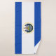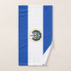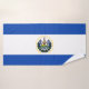 La bandera salvadoreña del EL es un triband horizontal con un emblema en el centro. Los colores usados en la bandera son azul, blanco. La proporción de la bandera salvadoreña del EL es 189:335. La bandera de El Salvador fue adoptada en 1912. El primer uso del diseño actual de la bandera estaba en 1912.