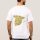 Un título y un lema editable acompaña el escudo de armas en una banda amarilla con las bandas rojas por encima y por debajo de la bandera española en el frente de esta camiseta. La parte posterior exhibe un mapa detallado de España.