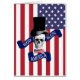 Funny diseño moderno orgulloso y patriótico de la bandera de Estados Unidos con un divertido cráneo gótico vintage usando sombrero superior al estilo Abraham Lincoln y una bandera de la bandera de la estrella norteamericana de rayas blancas y azules rojas, con Dios bendiga el texto de Estados Unidos diciendo. Celebrar con orgullo el día de agradecimiento o el 4 de julio, día de la independencia con estilo.