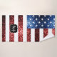 Personalice su nombre inicial y original, con una única toalla de baño falsa y brillante para ella. Regalo patriótico del 4 de julio para las damas - bandera de EEUU en purpurinas de imitación rojas y azules. Usamos fotos de chispas y no de purpurinas reales.