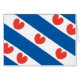 Bandera de Frisia, provincia de los Países Bajos. Se compone de rayas diagonales azules y blancas; en las rayas blancas hay pompeblêden rojo, hojas de la liga amarilla, que pueden recordarnos a los corazones, pero según las instrucciones oficiales "no deben tener forma de corazón".