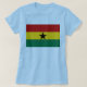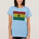 La parte delantera de esta camiseta muestra audazmente la bandera ghanesa con su distintiva estrella negra central sobre bandas rojas, amarillas y verdes. Esto se ve compensado por un atractivo mapa de Ghana.