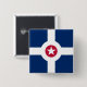 Botón cuadrado con bandera de la ciudad de Indianápolis, Indiana; bandera azul con cruz blanca y círculo rojo con estrella blanca en el centro