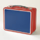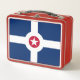 Buzón metalizado con bandera de la ciudad de Indianápolis, Indiana; bandera azul con cruz blanca y círculo rojo con estrella blanca en el centro