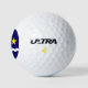 Balones de golf con diseño con bandera de Kinshasa, capital de la República Democrática del Congo, bandera azul con ola blanca, dos estrellas doradas y letra ‘K’ en el centro