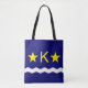 Bolsa de té con diseño con bandera de Kinshasa, capital de la República Democrática del Congo, bandera azul con ola blanca, dos estrellas doradas y letra ‘K’ en el centro