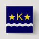 Botón cuadrado con diseño con bandera de Kinshasa, capital de la República Democrática del Congo, bandera azul con ola blanca, dos estrellas doradas y letra ‘K’ en el centro