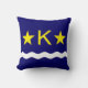 Tirar almohada con diseño con bandera de Kinshasa, capital de la República Democrática del Congo, bandera azul con ola blanca, dos estrellas doradas y letra "K" en el centro