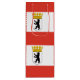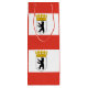 Bolsa de regalo de vino con bandera variante de Berlín, bandera estatal con franjas horizontales de rojo y blanco, con el ilustracion de un oso negro dentro de un escudo con corona