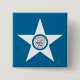 Botón cuadrado con bandera de Houston, Texas; bandera azul con sello de Houston en una estrella blanca, con un ilustracion de un tren