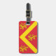 Etiqueta del equipaje con diseño con una bandera del condado histórico de Anglesey, en Gales, Gran Bretaña; bandera roja con el chevron amarillo y tres leones; los brazos atribuidos de Hwfa ap Cynddelw, la insignia tradicional del condado