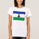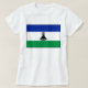 La parte delantera de esta camiseta muestra audazmente la bandera basotho con su distintivo motivo negro en una banda blanca con una banda azul por encima y una banda verde por debajo. Esto se ve compensado en la parte trasera por un atractivo mapa de Lesotho.