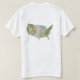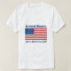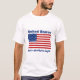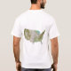 Un título y un lema editable acompaña las rayas rojas y blancas con las estrellas blancas en el cantón azul de la bandera americana en el frente de esta camiseta. La parte posterior exhibe un mapa detallado de los E.E.U.U.