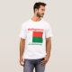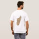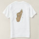 Un título y un lema editable acompaña la vertical blanca al lado de bandas horizontales rojas y verdes de la bandera malgache en el frente de esta camiseta. La parte posterior exhibe un mapa detallado de Madagascar.