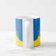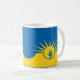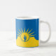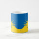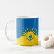 Mug con bandera de la ciudad Mesa, Arizona; bandera amarilla y azul con ilustraciones estilizados del desierto, cactus y sol naciente