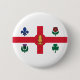 Botón con la bandera de Montreal, la ciudad más poblada de la provincia de Quebec, Canadá. Bandera blanca con cruz roja, pino blanco, flor azul, rosa roja de Lancaster, roca de champú y cardo