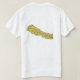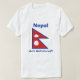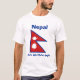 Un título y eslogan editable acompaña a los símbolos blancos en un fondo rojo de forma irregular con el borde azul de la bandera nepalesa en la parte delantera de esta camiseta. La parte de atrás muestra un mapa detallado de Nepal.