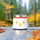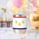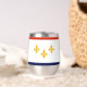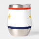 Tumbler de vino con bandera de Nueva Orleans, Luisiana; bandera blanca con rayas rojas y azules y tres fleur de lys dorados