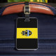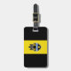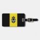 Etiqueta del equipaje con bandera de la ciudad de Pittsburgh, Pennsylvania; bandera con tres bandas verticales de negro y amarillo con ilustracion de castillo y escudo en el centro