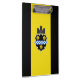 Portapapeles con bandera de la ciudad de Pittsburgh, Pennsylvania; bandera con tres bandas verticales de negro y amarillo con ilustracion de castillo y escudo en el centro