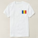 El frente de esta camiseta lleva una pequeña bandera rumana con sus bandas verticales familiares del azul, amarillas y rojas, mientras que la parte posterior exhibe un mapa de alivio de Rumania. Disponible en las camisetas, las camisetas, los polos, las largo-mangas y más.