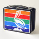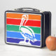 Lunch Box con un diseño con la bandera de San Petersburgo, Florida. Bandera de rayas naranja, rojas, verdes, azules y azul marino con un símbolo de pelícano blanco
