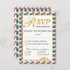 Elegante tarjeta de respuesta RSVP de boda con borde de MAP de SUDÁFRICA en patrón de baldosa y contorno de oro. El mensaje al revés dice 'Y los dos se convertirán en uno'. Elementos coincidentes disponibles. El texto puede ser totalmente personalizado con su propio mensaje y contenido. Se puede usar para bodas y otras celebraciones. Estar orgulloso de su herencia en su día especial.