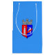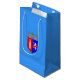 Bolsa de papel con diseño con bandera de Tirana, capital de Albania, bandera azul con escudo de armas